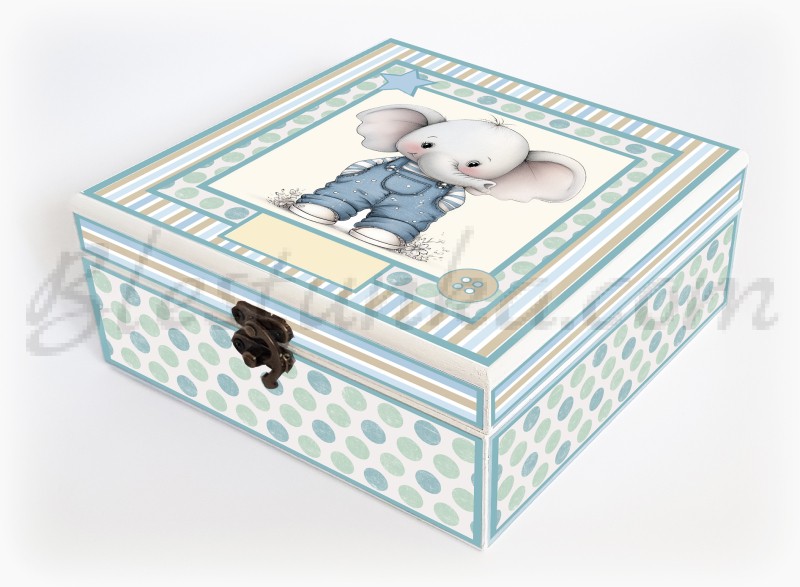 Caja para los tesoros del bebé "Pequeño elefante"- caja para los primeros tesoros del bebé /primer pelo, cordón umbilical, primera joya, etc./.