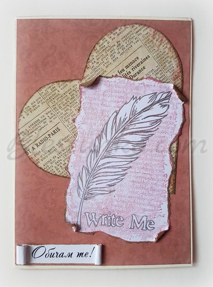 Картичка "Обичам те" - ръчно изработена поздравителна картичка с любовна тематика.