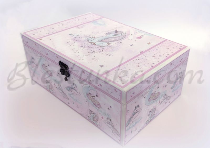 Кутията е подходящ подарък за новородено бебе, за погача, за кръщане, за първата годинка, за съхранение на скъпи за Вас бебешки аксесоари /дрешка, дрънкалка, биберон, обувчици и др./